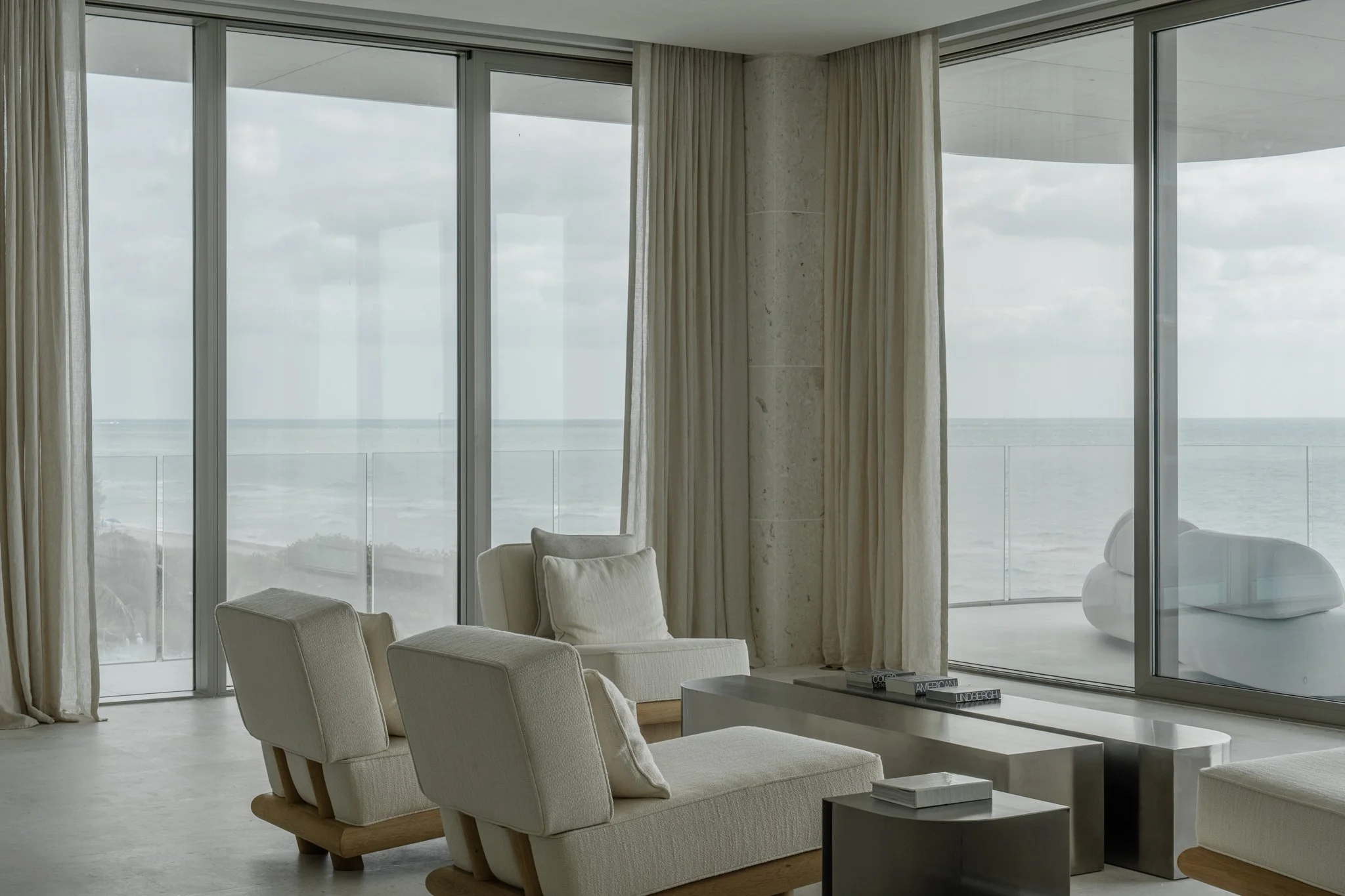 Set within the new Four Seasons residences in Surfside, this apartment was designed as a serene, architectural sanctuary. Spanning the full width of the building, it offers uninterrupted views of both the Atlantic Ocean and the bay and city beyond, bringing the contrast of sea and skyline into every room.